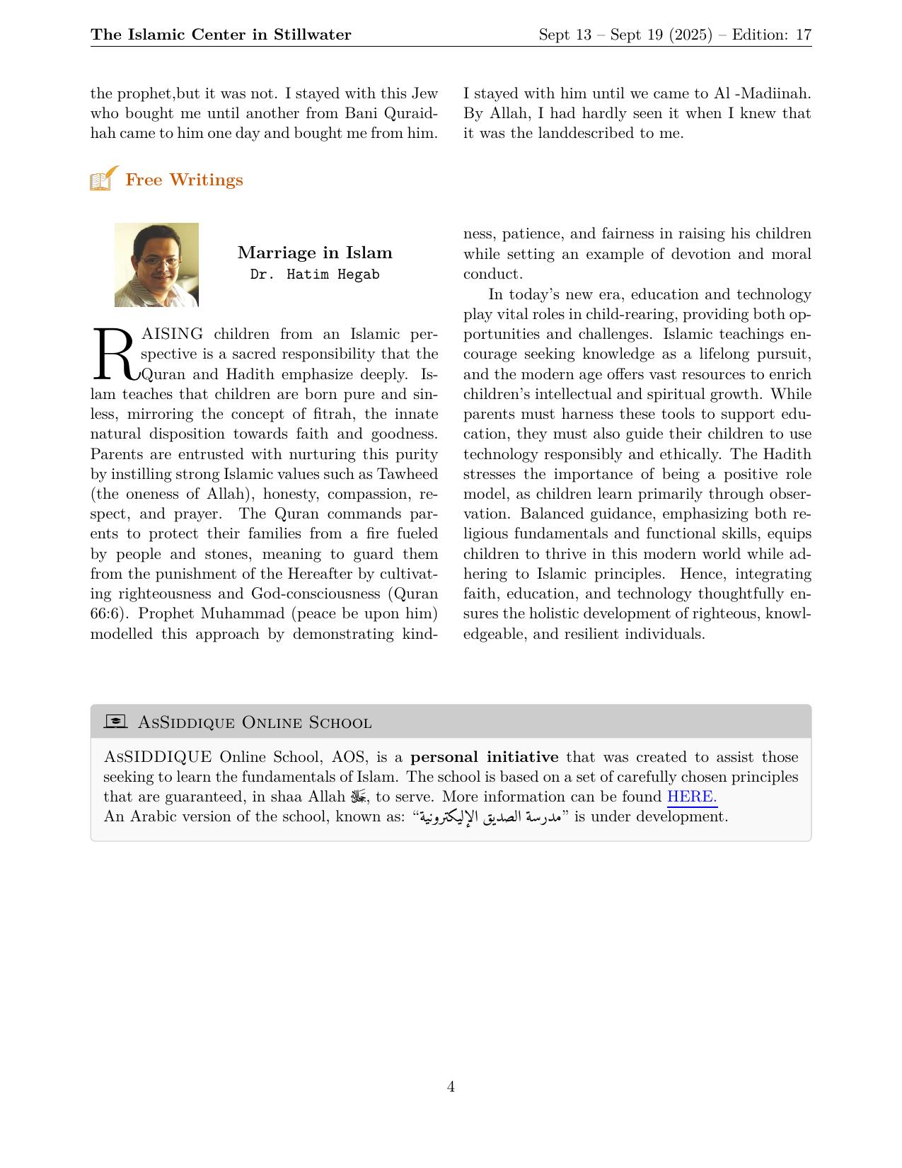 Each week, I’ll aim to include news, upcoming events, important announcements, and articles relevant to our community, the city of Stillwater, or any other topics of general interest. This bulletin’s primary purpose is to connect people, encourage more community activities, and provide a platform for members to share advertisements with others in the Muslim community. For this bulletin to truly thrive, your contributions are essential. I warmly invite all members to consider writing for us.