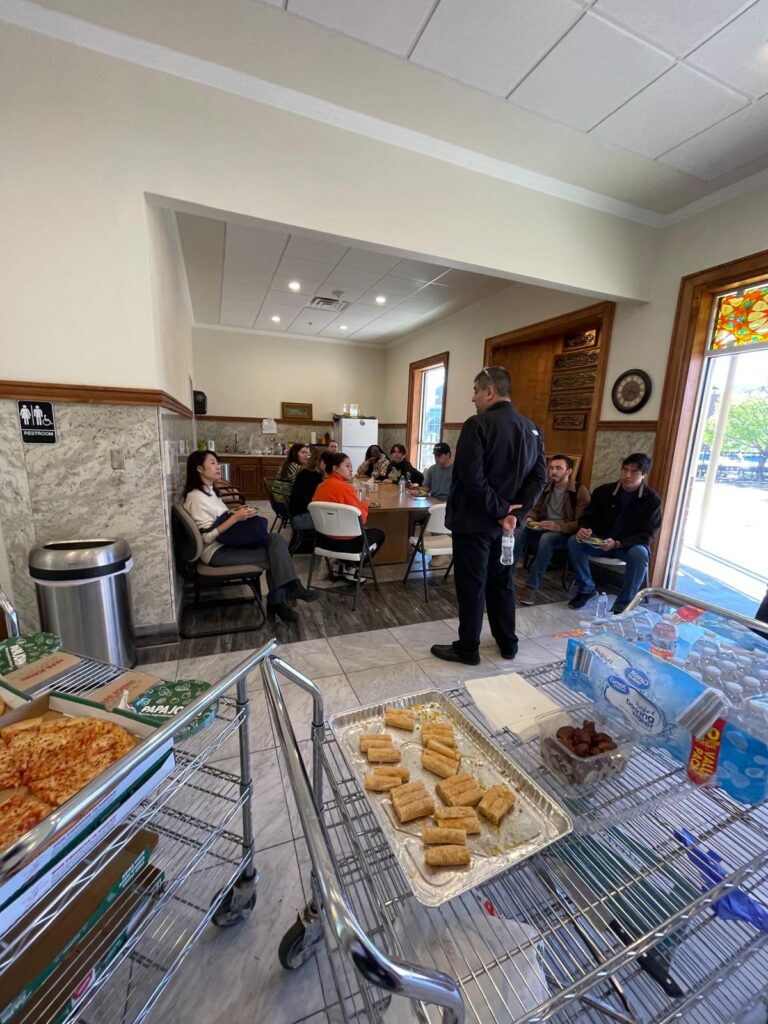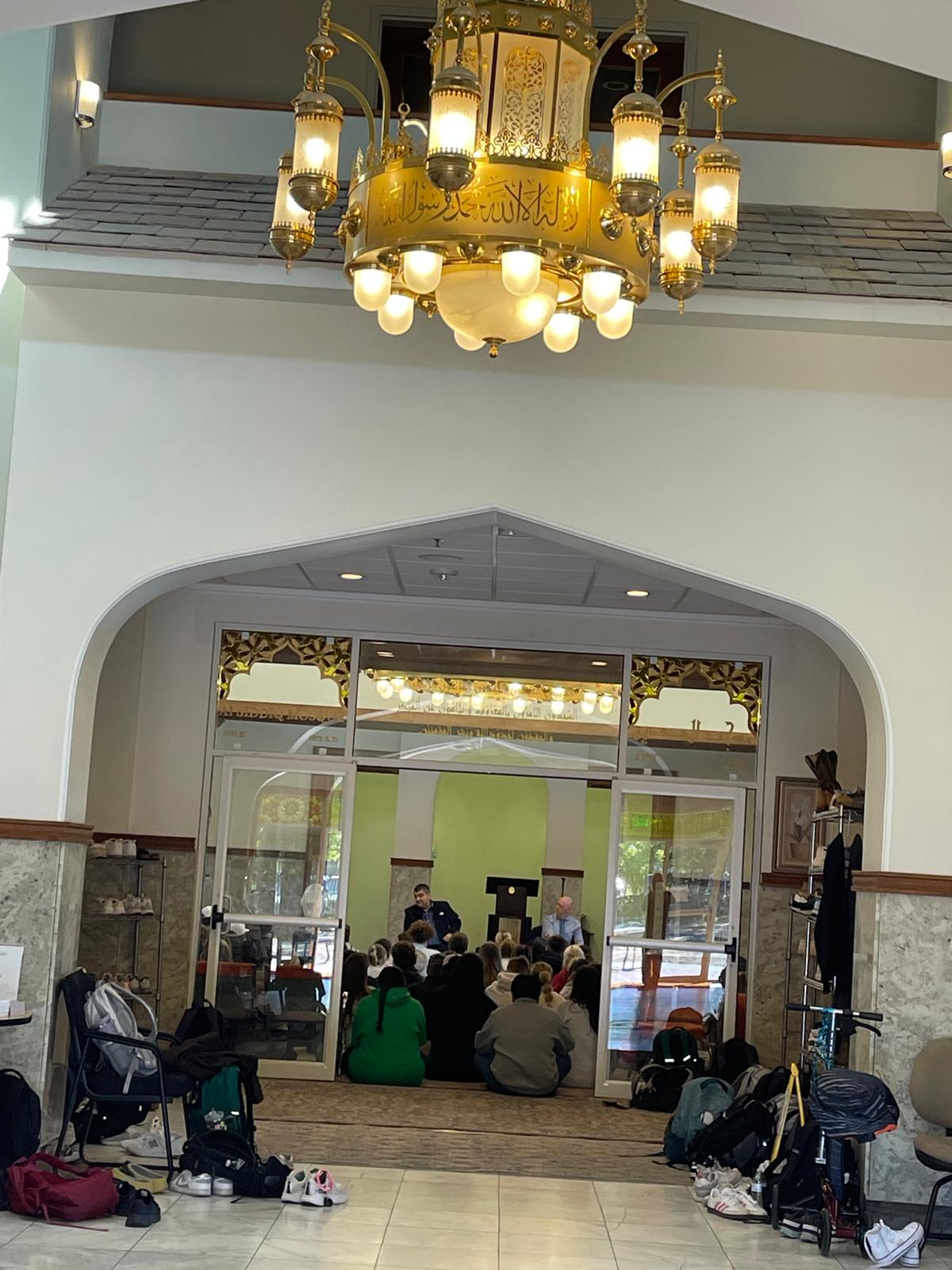 Pizza, baklava, and water were offered, and all students expressed their happiness in being at “a mosque.” For many of them, this was their first time visiting one.