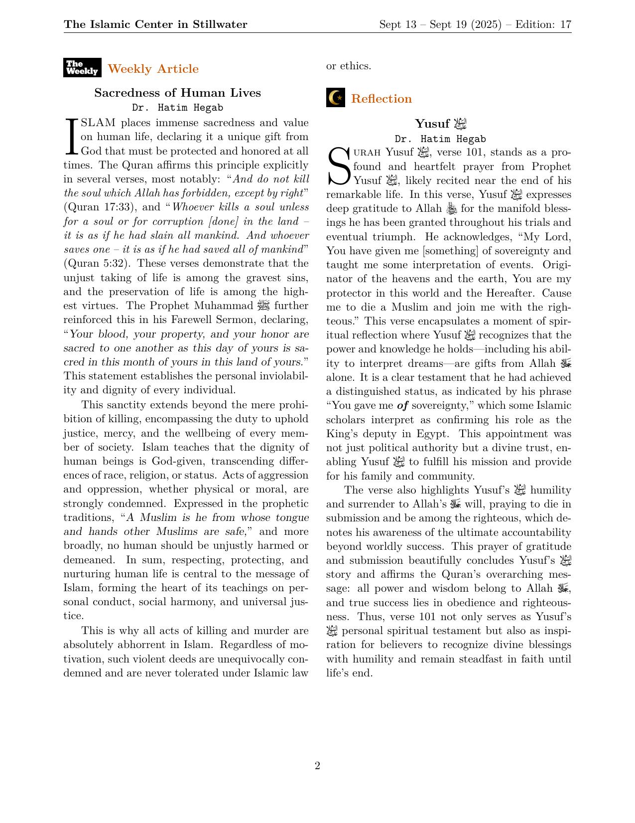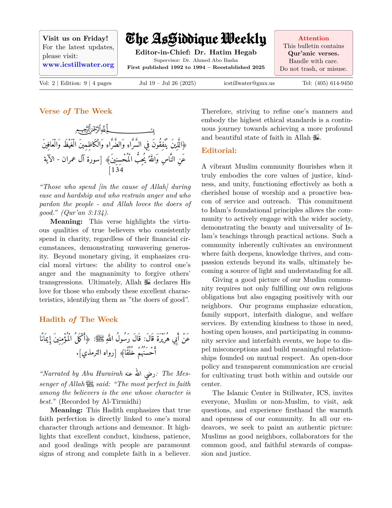 Welcome to the first edition of our revitalized weekly bulletin! This project is a revival of a cherished tradition from the 1990s when the Islamic Center in Stillwater regularly published a similar bulletin, which unfortunately ceased around 1997. I hope to breathe new life into this valuable community resource.