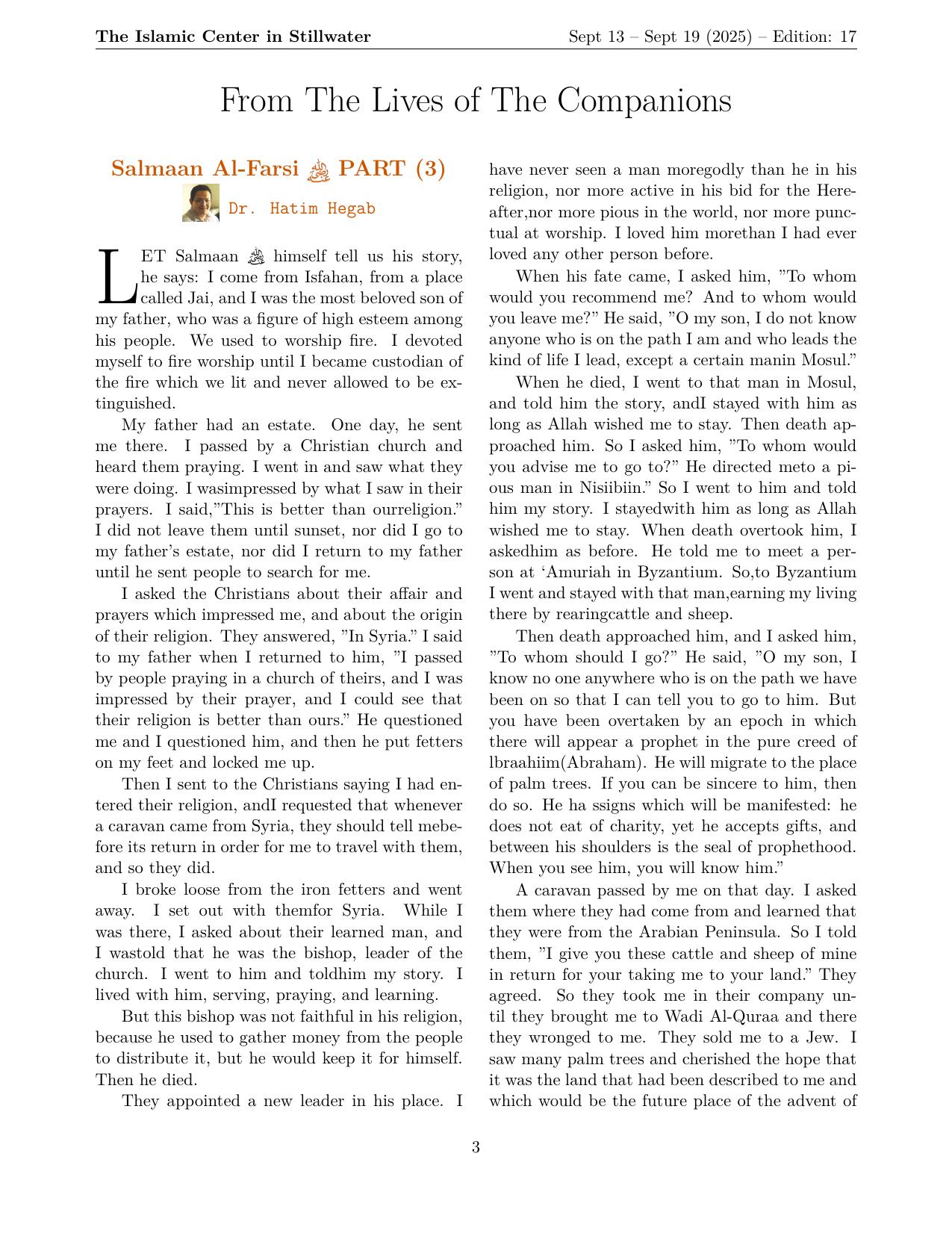 It has truly been a blessing and a privilege to serve this community, this masjid, and the Islamic Center for the greater part of my life—with the help and support of Allah (SWT), and the sincere efforts of many devoted brothers, to whom I am deeply grateful. With Allah’s guidance and support, I will continue to serve in the Dawah mission of this masjid, this Stillwater Embassy of Islam.