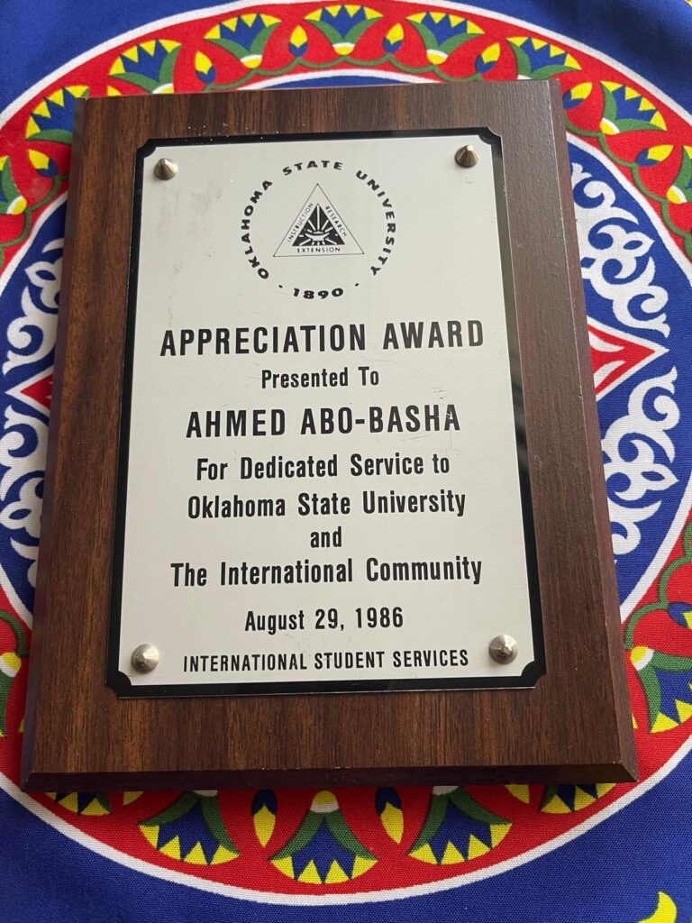From what I know about Dr. Basha, he arrived in the United States in January 1982 and did not come directly to OSU-Stillwater. Yet, receiving such an appreciation award in 1986—only four years after being in Stillwater—is a truly outstanding and unparalleled achievement.