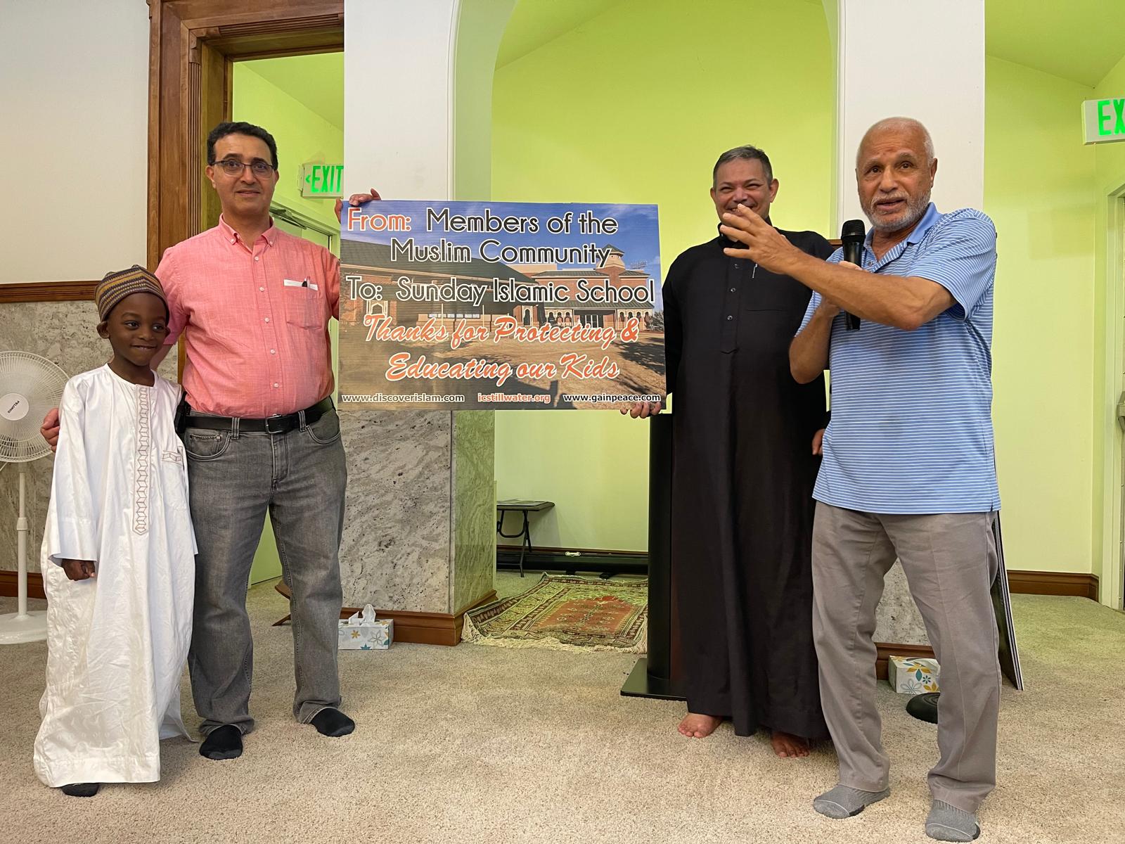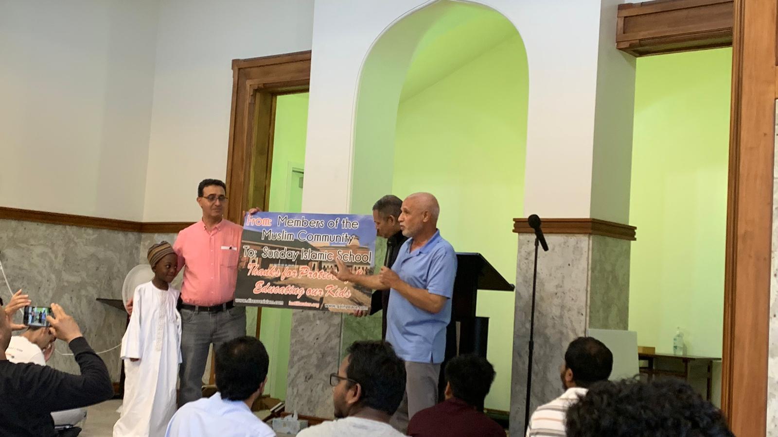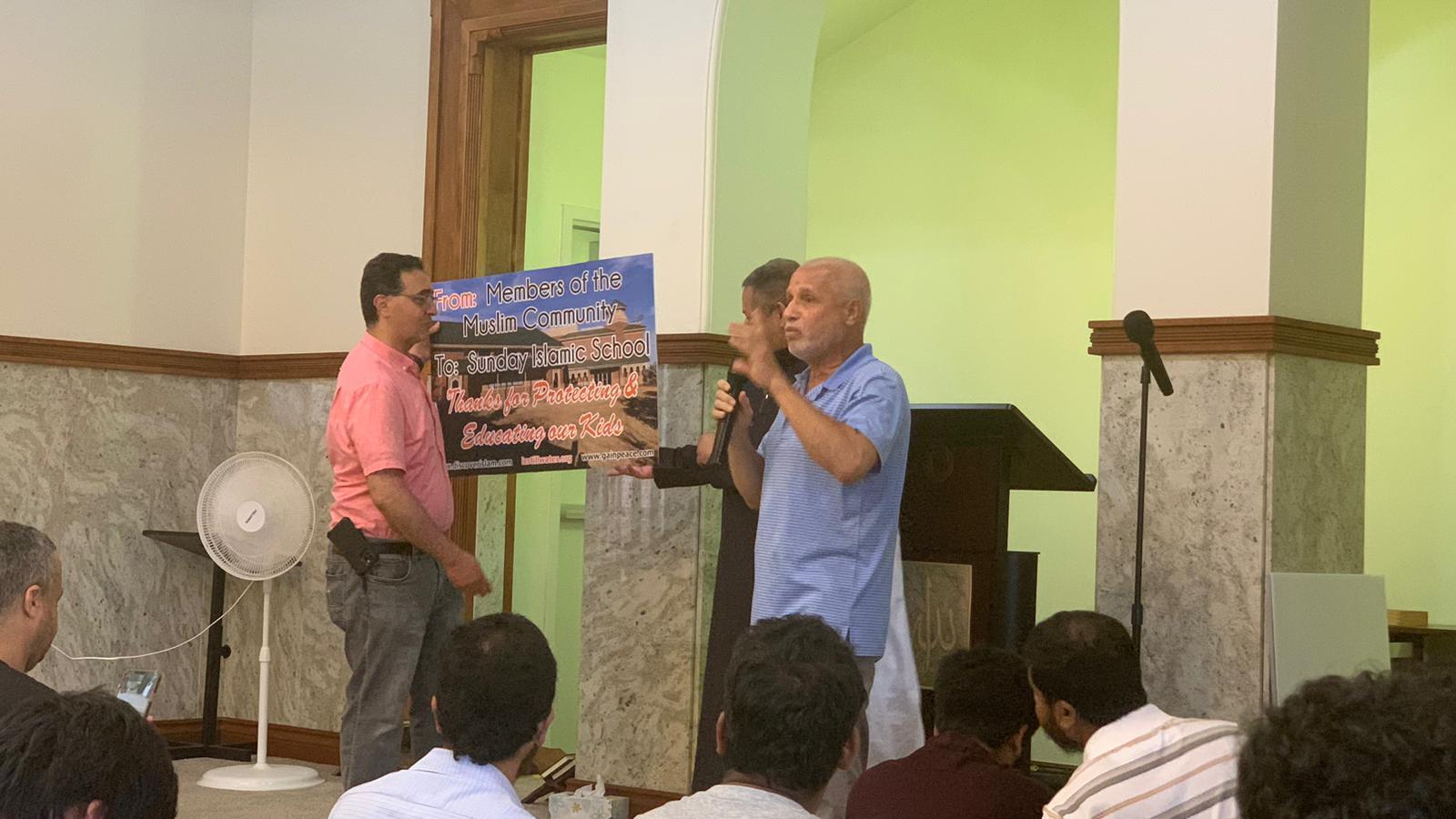 Alhamdulillah, in a joyful and pleasant atmosphere that our community enjoys these days, May Allah bless us with more of these days extending their joyful reasons, Dr. Ahmed Abo Basha presented Dr. Hasan Atiya, the Sunday Islamic School Director, with a token of appreciation for his and his family’s outstanding and remarkable contributions.